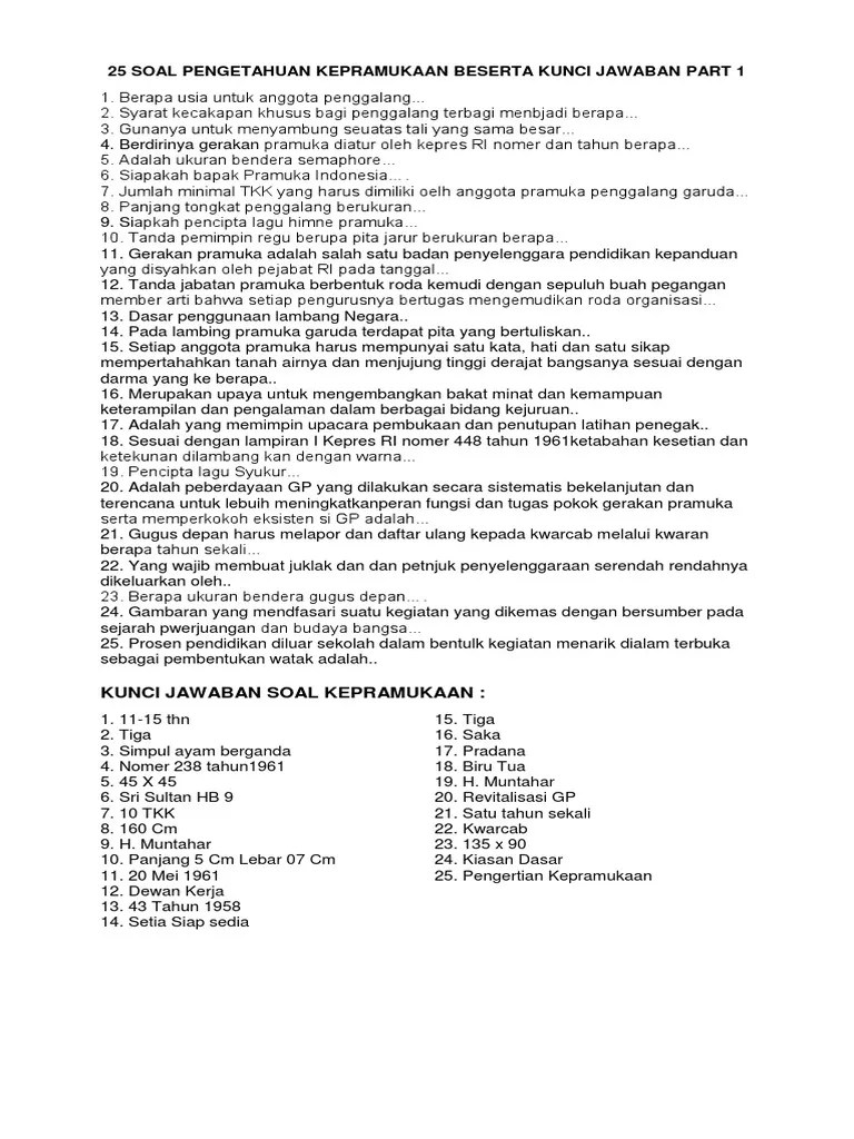 Contoh Soal Pilihan Ganda Dan Jawabannya Materi Sku Penggalang Jawabanku Id from imgv2-2-f.scribdassets.com We did not find results for: Maybe you would like to learn more about one of these? Check spelling or type a new query. Contoh soal pramuka pilihan ganda beserta jawabannya.